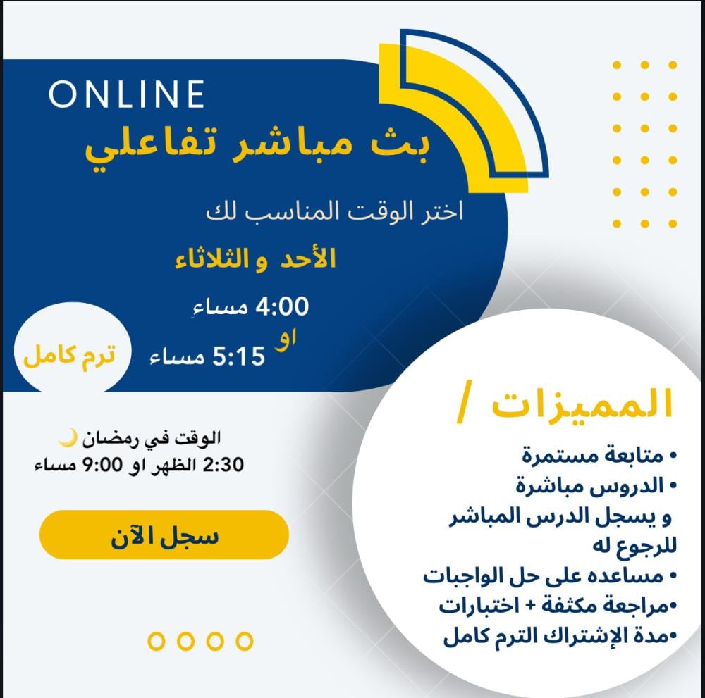 - الدروس مباشرة و يسجل الدرس للرجوع له في اي وقت .